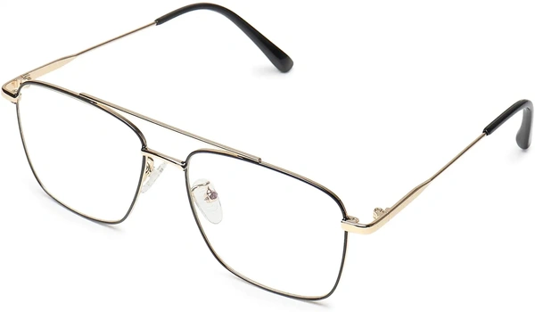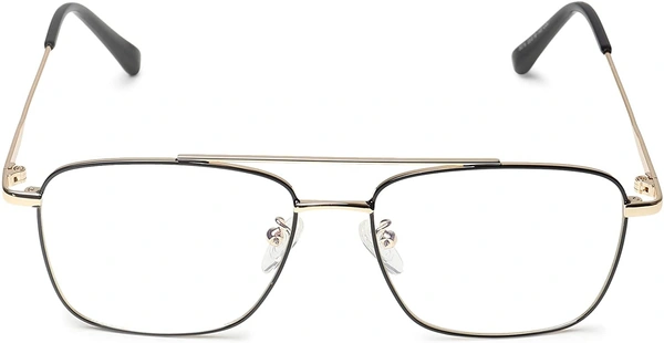 GLEBIX Square Black & Silver Metal Frame With Blue Cut Lens